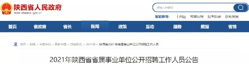 根据《事业单位人事管理条例》《陕西省事业单位公开招聘工作人员实施办法》及相关规定,经省政府批准,2021年面向社会为省属事业单位统一公开招聘866名工作人员(含中央驻陕事业单位46人)。现将有关事项公告如下: