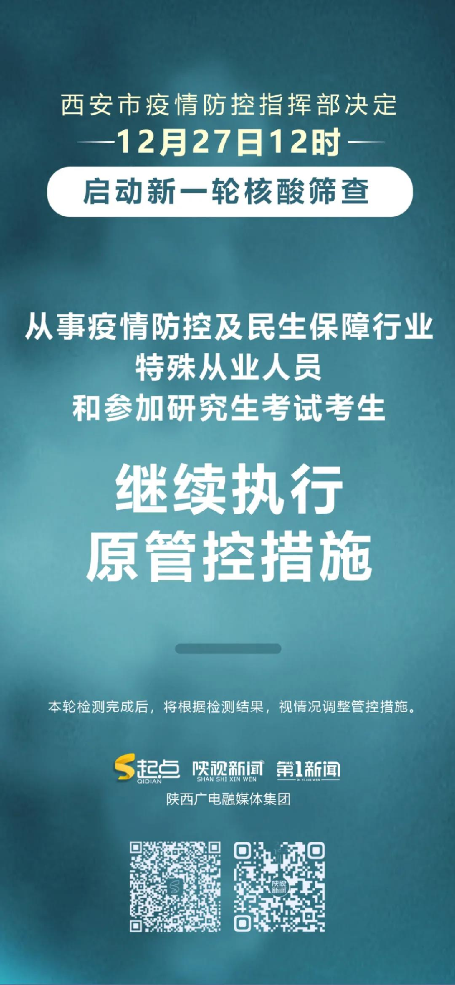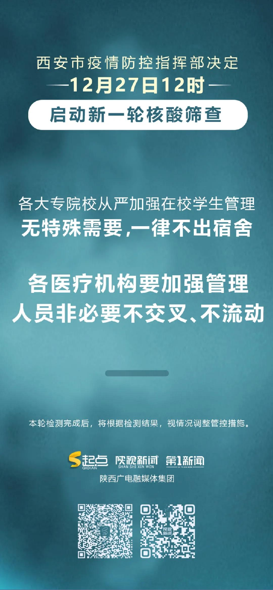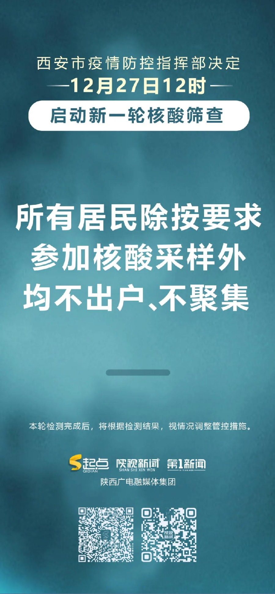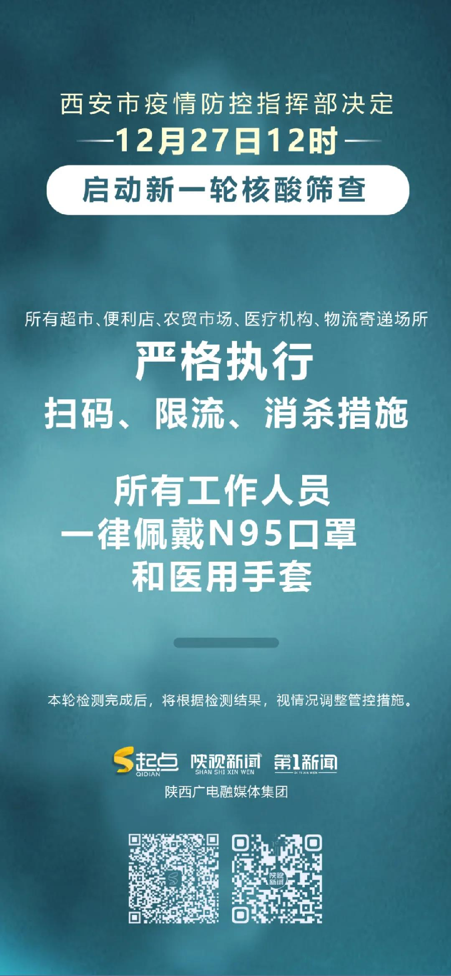 根据西安市疫情防控指挥部统一部署,12月27日零时起,全市进一步提升防控等级,实行最严格的社会面管控措施。遵守防疫法规、执行管控措施,是全体市民的义务和责任。为确保相关要求严格落实到位,现就有关事项通告如下: